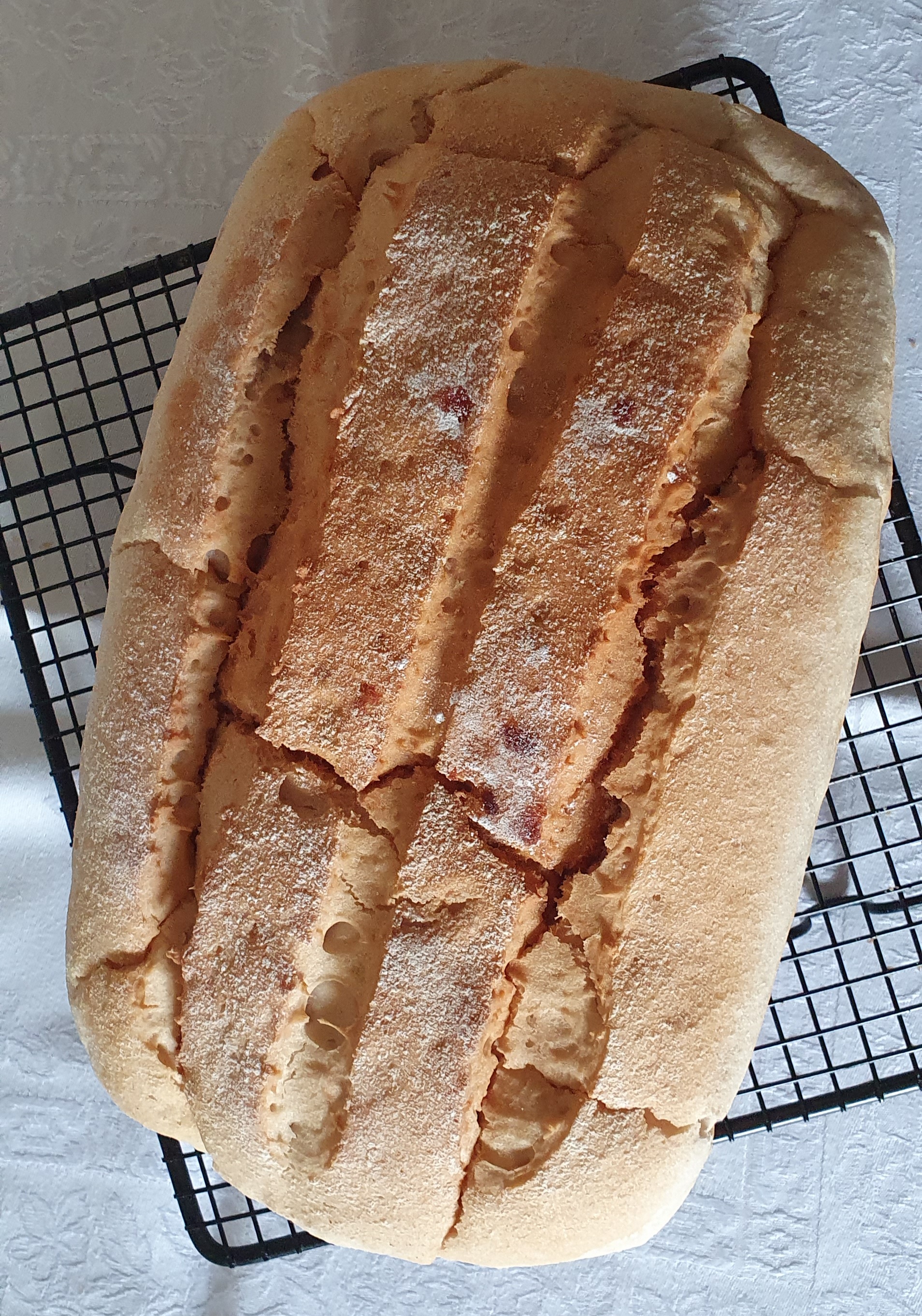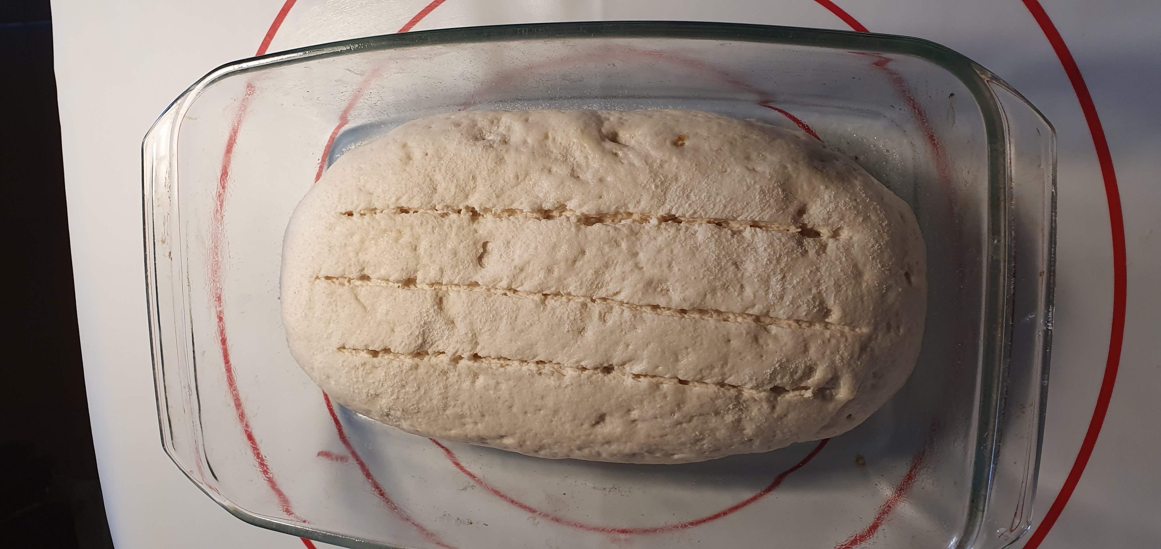 6° Espolvoree con harina superficialmente y haga 3-4 Cortes en el pan.
