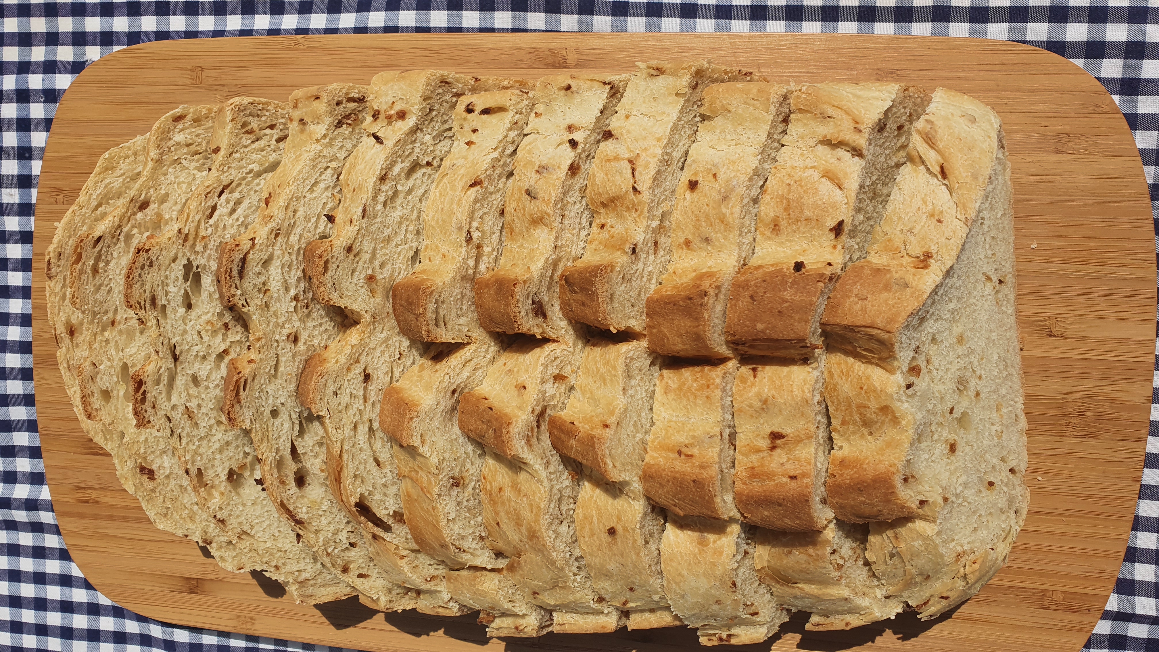 7° Hornear 45 minutos a 200° con calor arriba y abajo, y 20 minutos antes de terminar quitaremos la tapa para que el pan termine de dorarse.