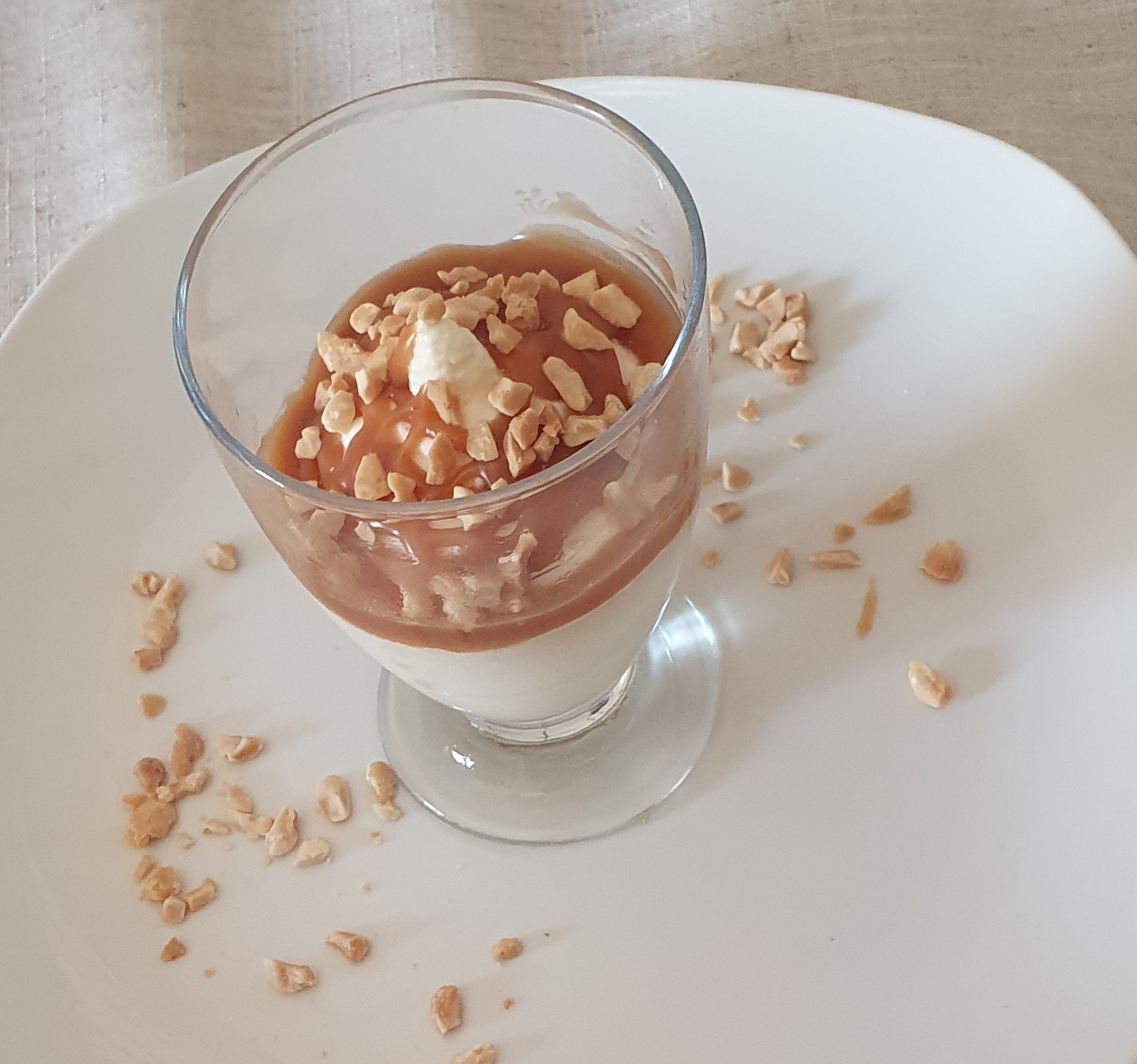 4° Poner en una manga y servir en vasos y rociar con la salsa de caramelo.