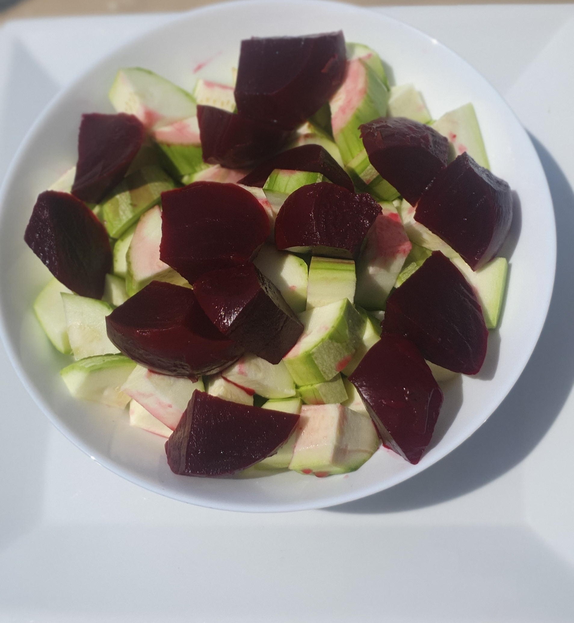 3° Añadir los calabacines, la remolacha, el agua y la sal y programamos 30 minutos, 100° velocidad 1.