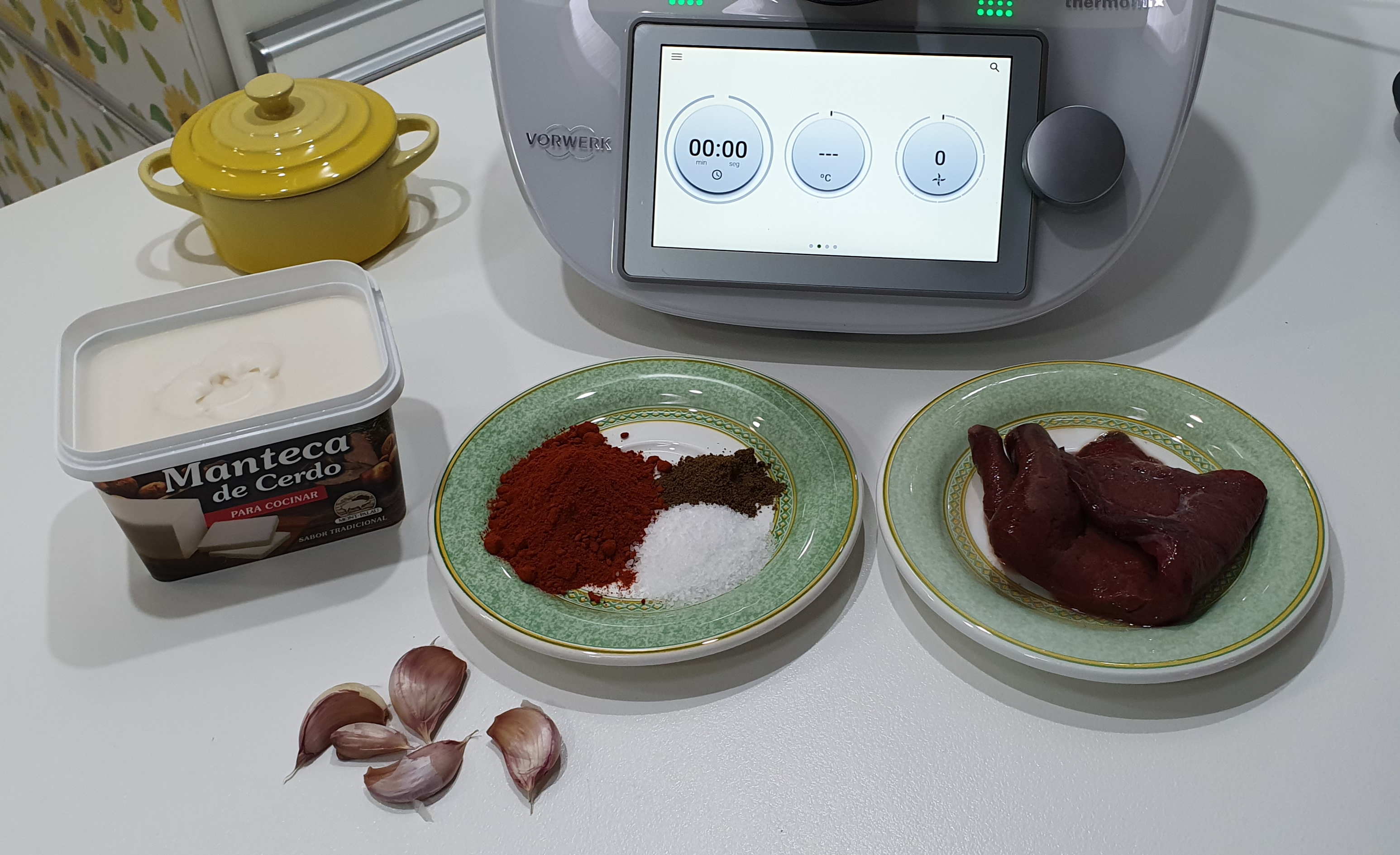 * Añada el higado, el comino, el pimentón, el agua, 100 gr de manteca y el orégano. Programe 20 minutos /varoma /vel 1