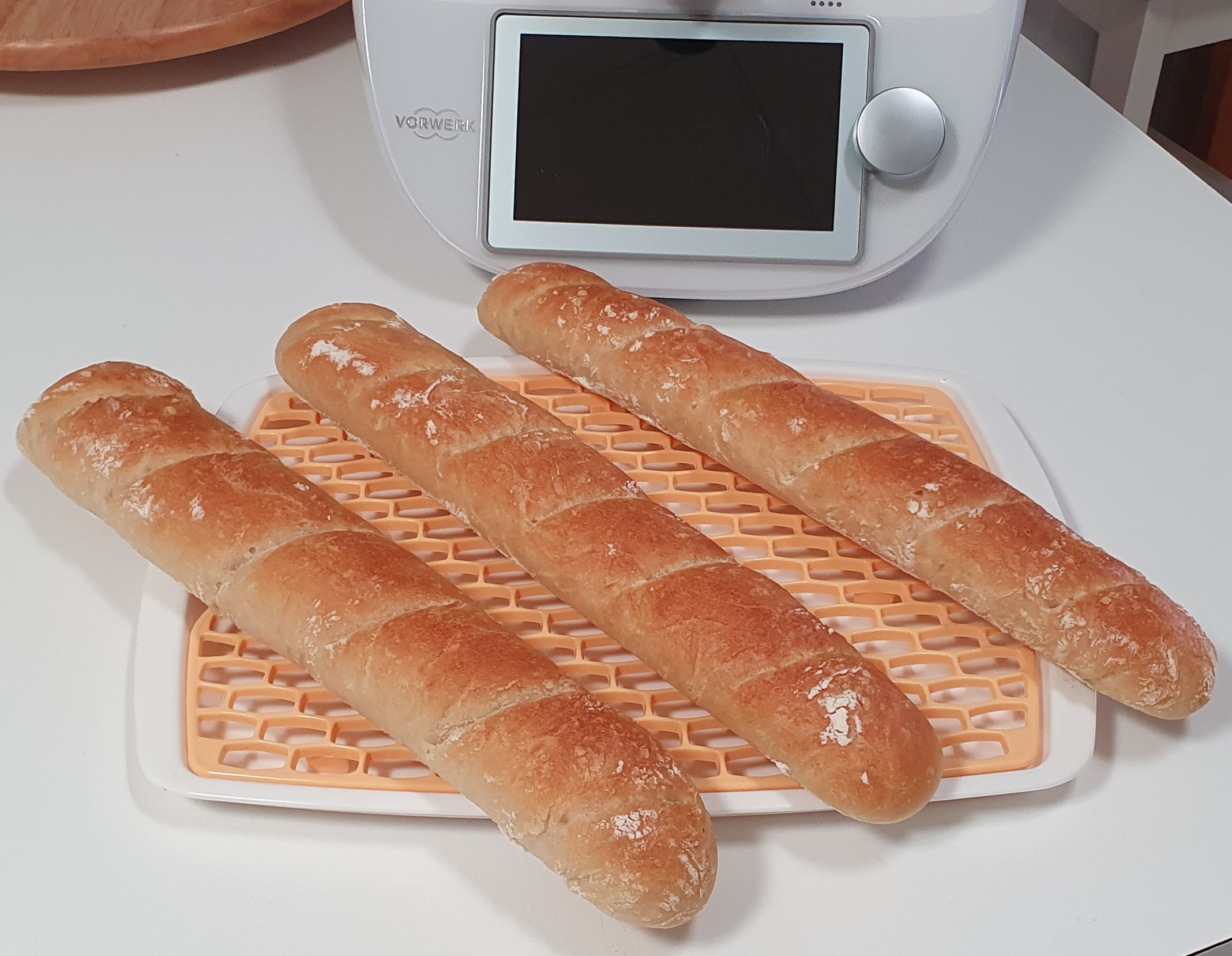 Hoy prepararemos baguettes, que para mí es uno de mis panes favoritos. Es muy sencilla de hacer, pero tenéis que contar con tiempo para el levado. Podréis congelarlas por mitades para tener en vuestro congelador a mano.