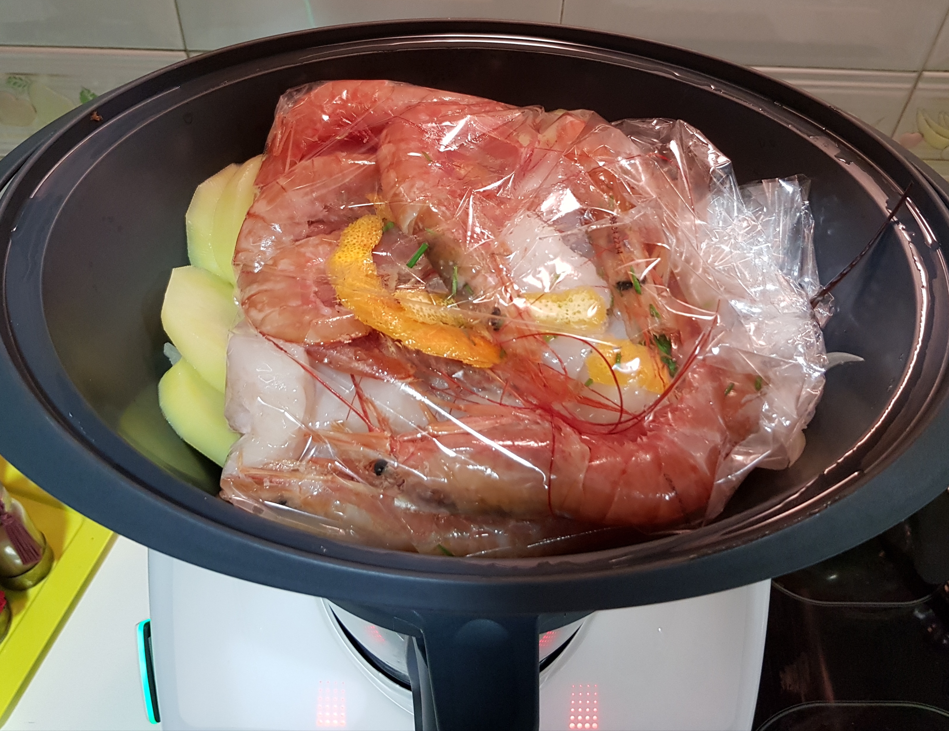 SOPA DE PICADILLO,RAPE CON GAMBON,PATATAS PANADERAS EN SALSA DE NARANJA CON THERMOMIX