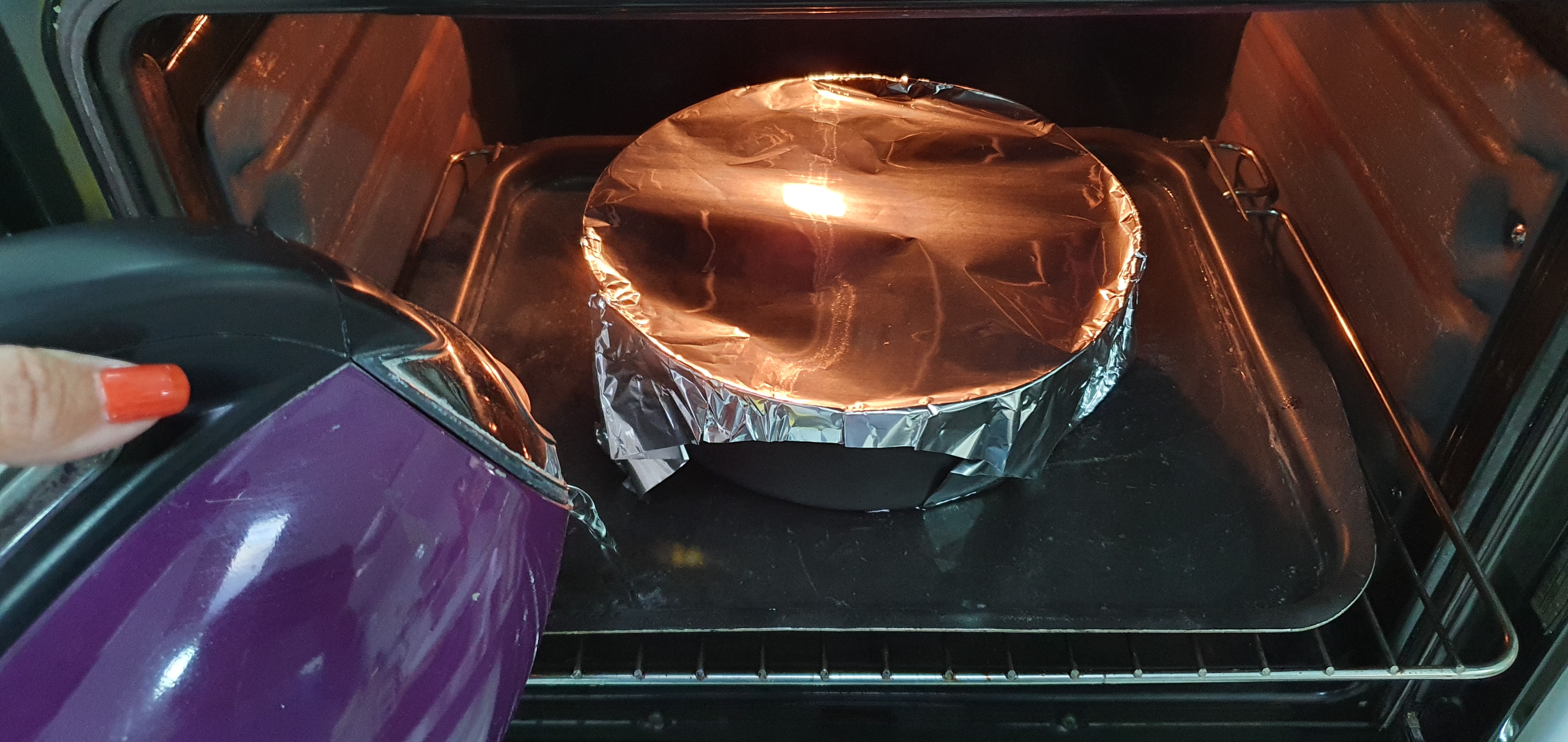 * Cueza con el horno precalentado a 180° durante 1,30h, ponga en la bandeja del horno agua caliente y tape el bizcoflan con papel de plata, pinche con una brocheta para ver si está terminado
