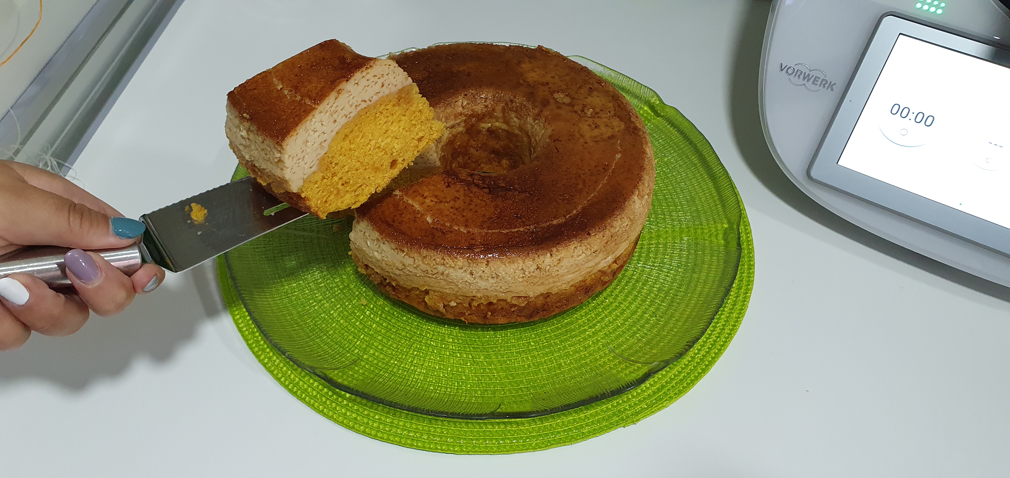 * Deje templar dentro del molde, de la vuelta en un plato de servir y deje que el bizcocho se empape del caramelo al caer
