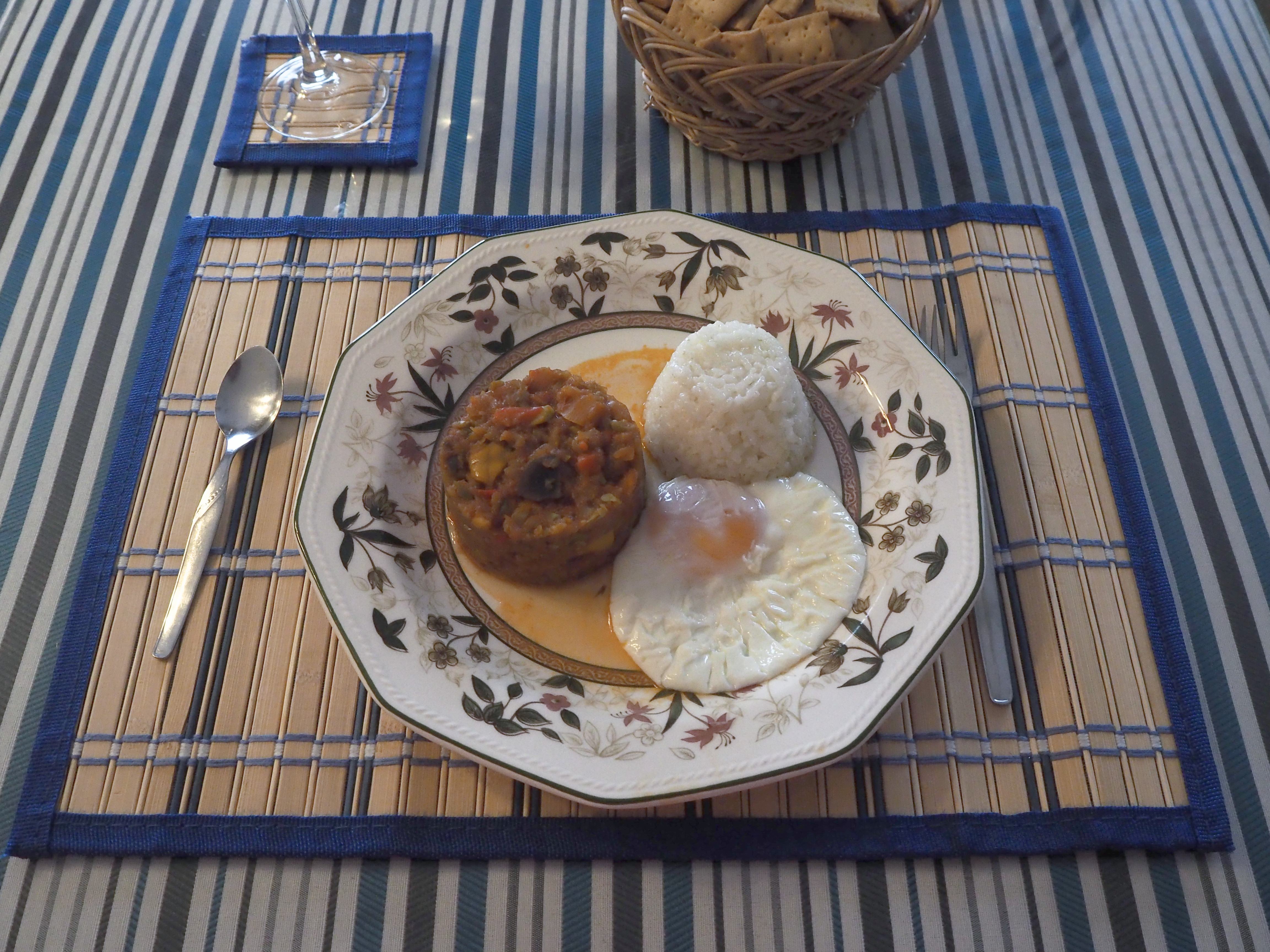PISTO CON FLANÉRAS DE ARROZ Y HUEVOS POCHÉ CON THERMOMIX