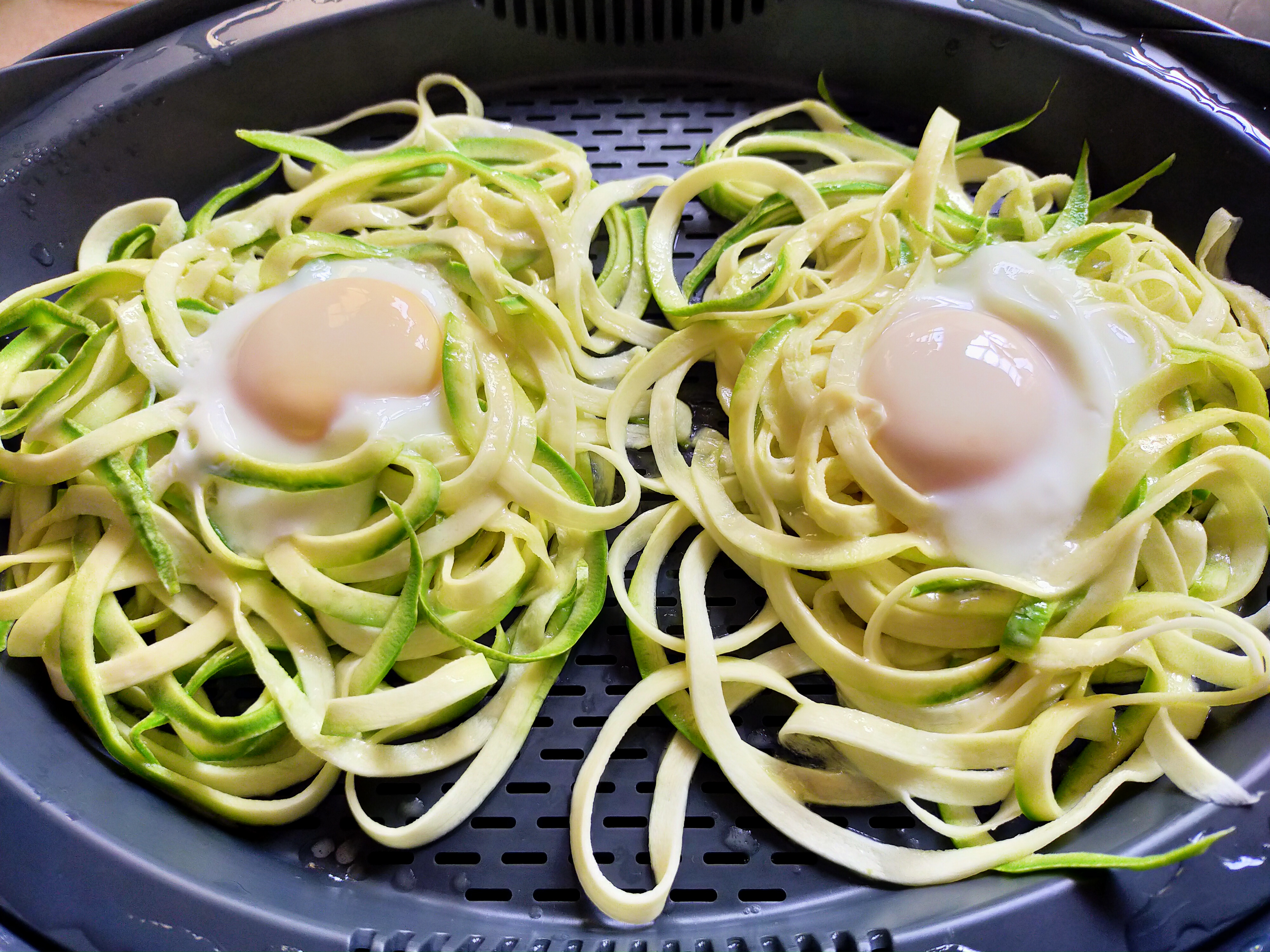 Zoodles de calabacín con parmesano y huevos poché con Thermomix ®