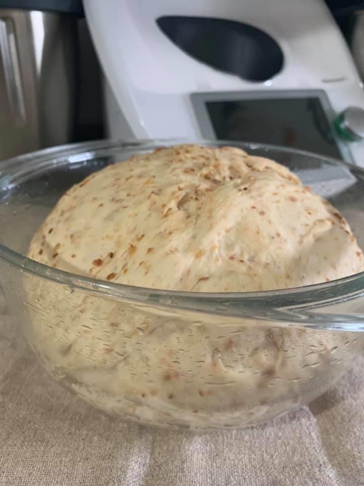 3. Poner en el horno a 180’C, calor arriba y abajo (y un recipiente con agua para crear vapor) y hornear durante 35-40 minutos (según horno).