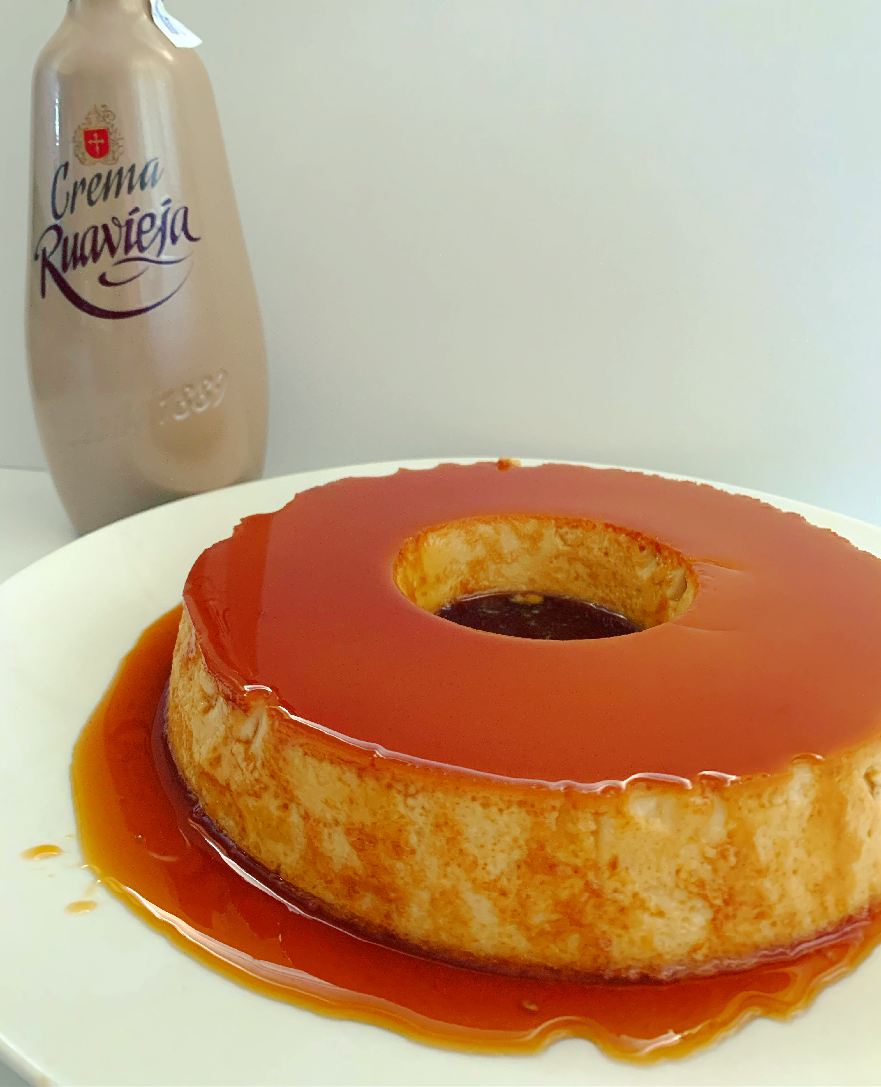 1️⃣ Ponga en el vaso los huevos, la leche condensada, el licor de crema Ruavieja, y la leche evaporada y mezcle 3 min/vel 10.