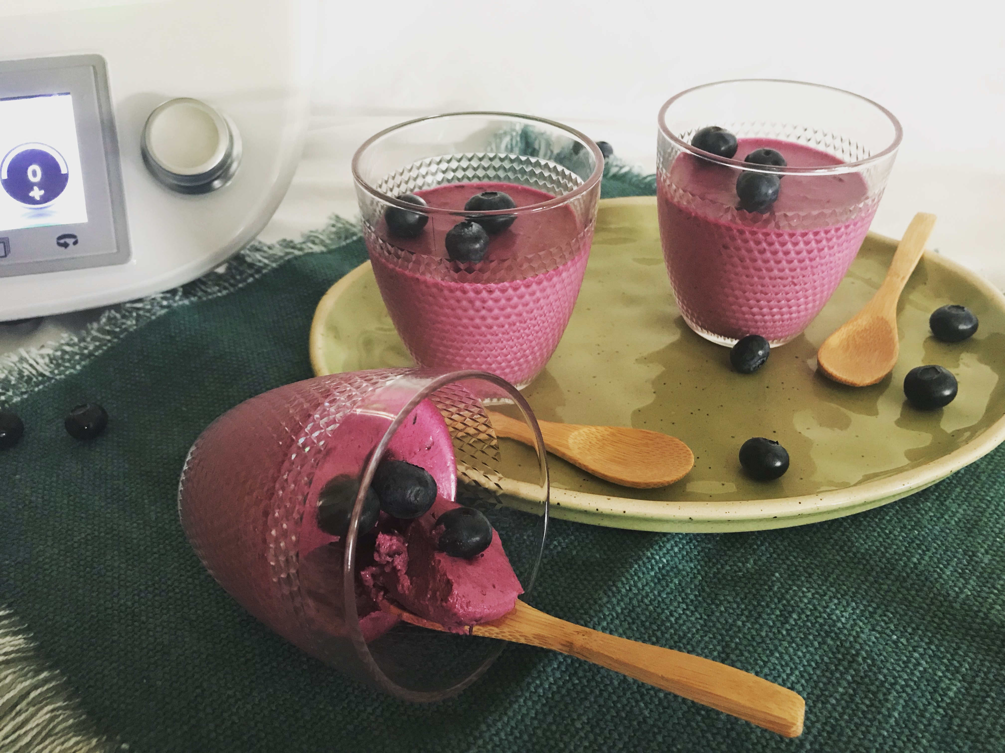 Esta mousse contiene trocitos pequeños de arándanos, si prefiere no encontrarlos, pulverice al terminar de cocinarlos o antes, 1 min/vel 10.