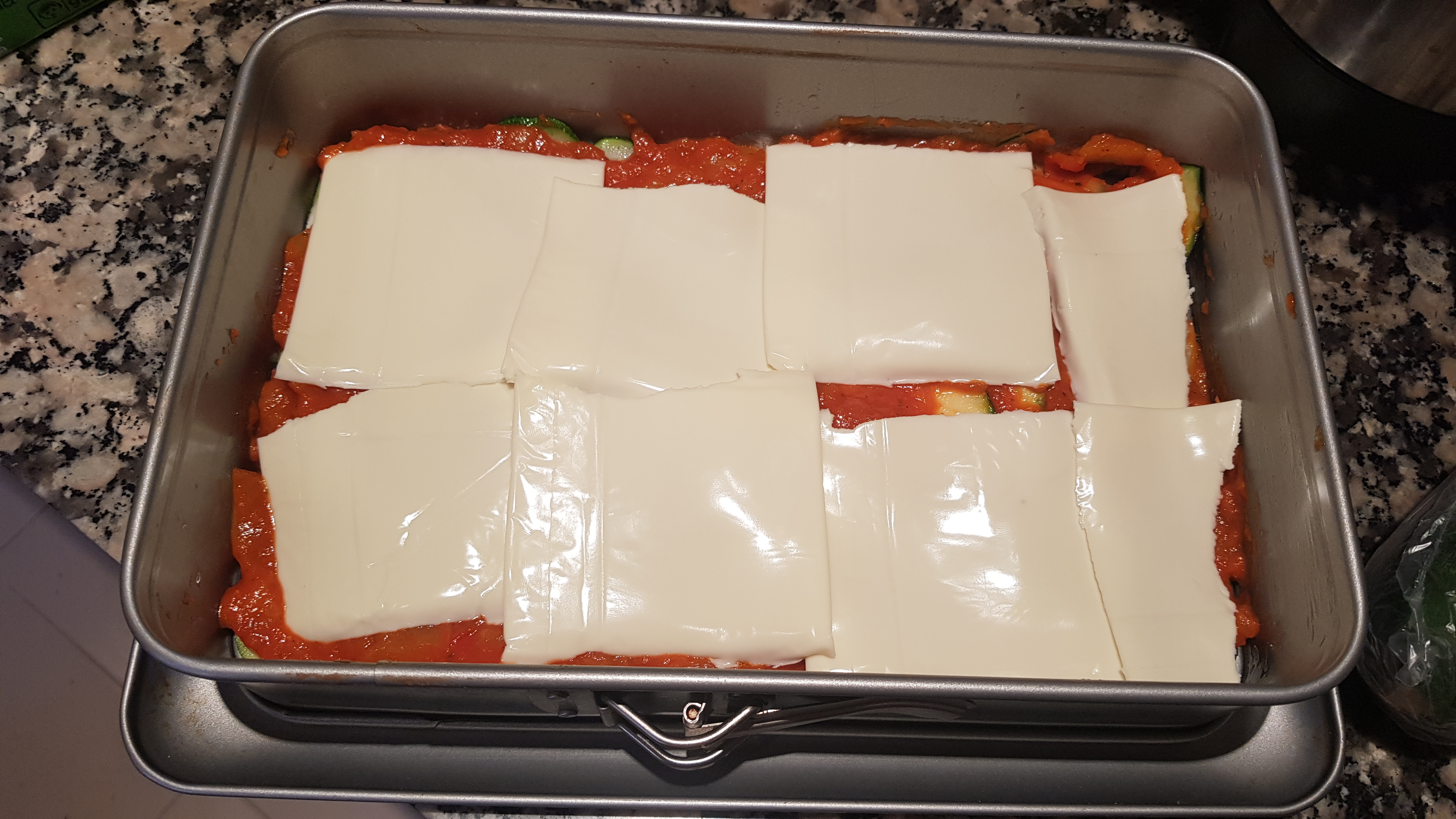 -Para el montaje; 300 gr de calabacines, queso de lonchas y queso parmesano u otro que sea de taco para rallar.