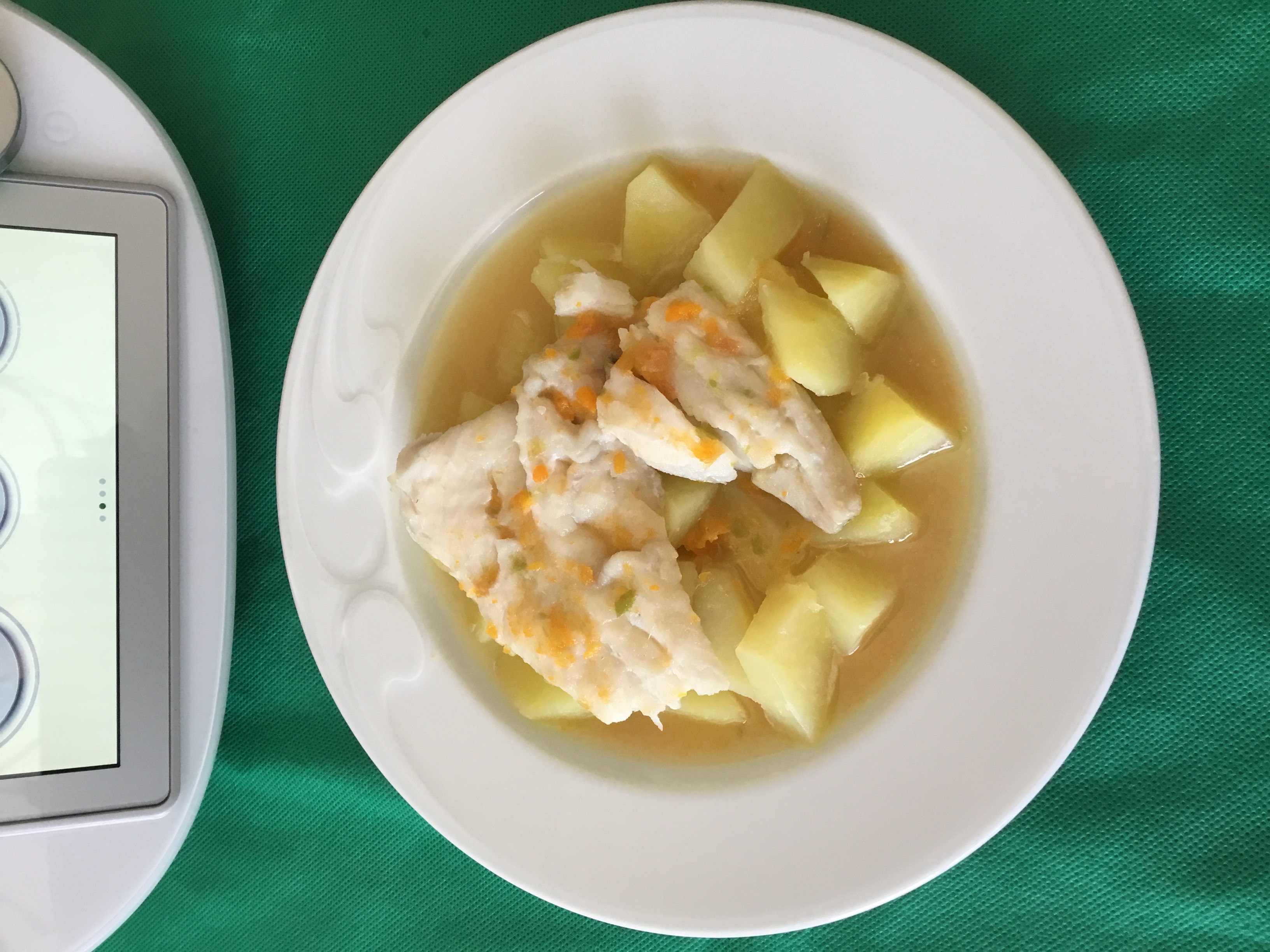 Esther esto está riquísimo y tiene un sabor muy suave y podemos tomarlo todo junto o la patata con el caldito por un lado y el pescado por otro.