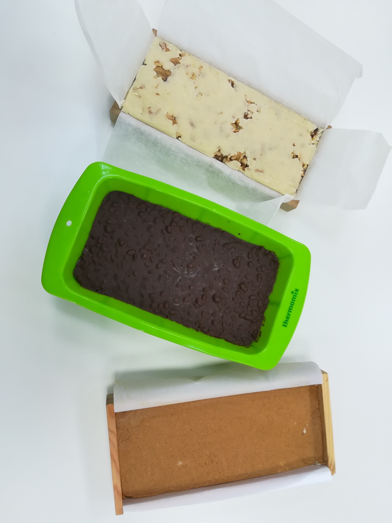 Esta semana, en nuestra delegación los hemos preparado de almendra, de nata y nueces y de chocolate crujiente. Podemos cambiar el tipo de chocolate y añadirle galletas, pasas o lo que más nos guste. Una idea fantástica es confitar naranjas con Thermomix para hacer un turrón aún más especial.