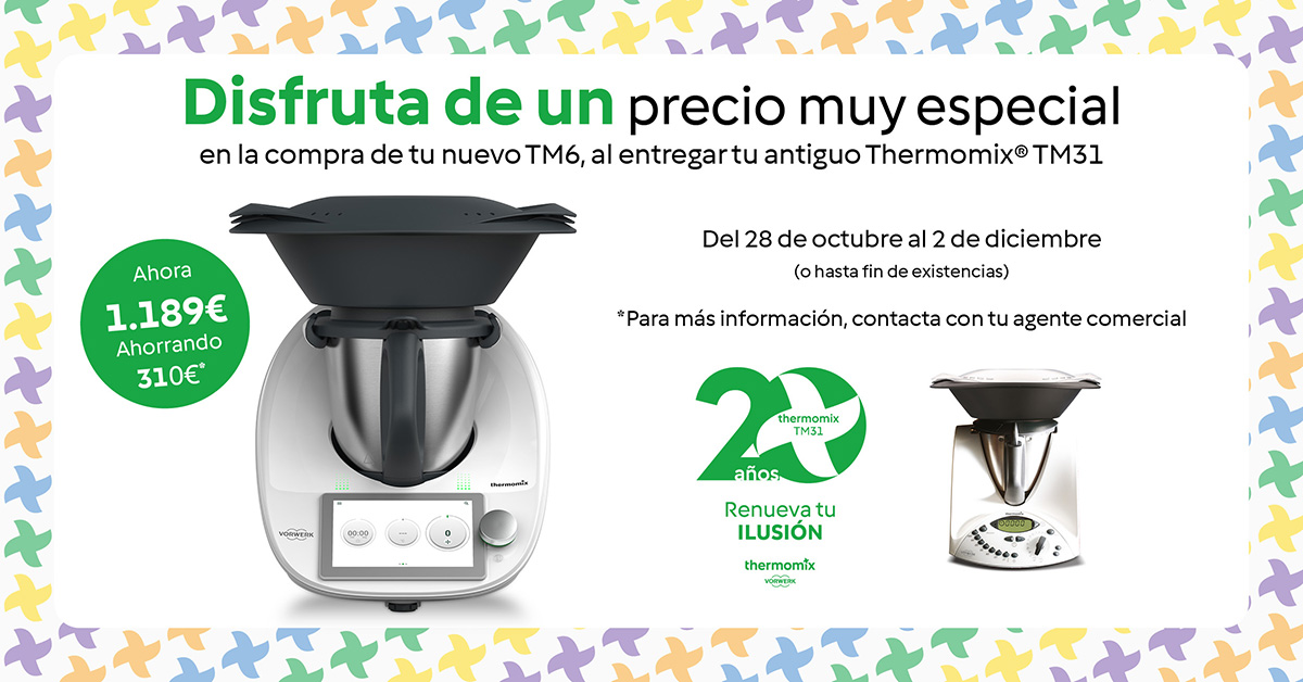 Celebramos el 20 aniversario de Thermomix® TM31 premiando tu fidelidad: ¡entrega tu antiguo TM31 y da el salto a Thermomix® TM6 con 310€ de descuento! ?