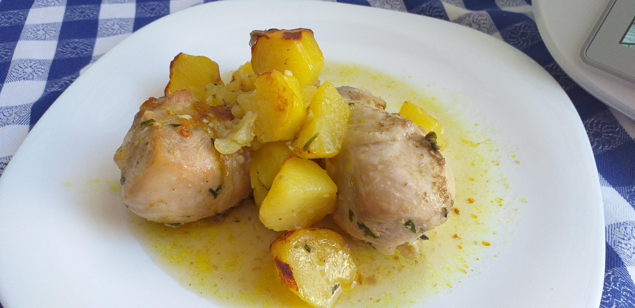 Como preparar los jamoncitos de pollo y patatas asadas con Thermomix®