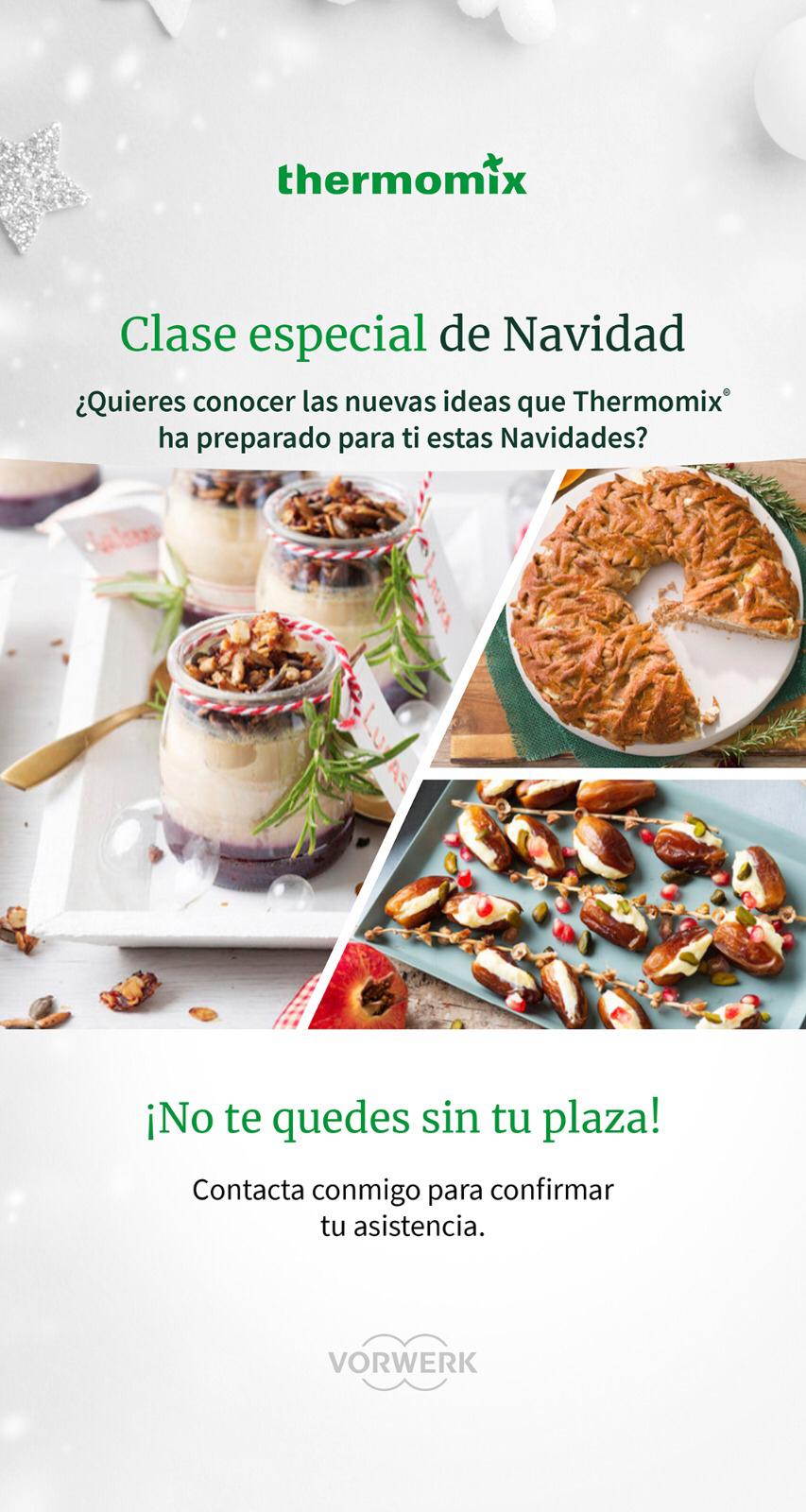 Y por último, y el que le gusta más a los clientes, la Clase especial de Navidad, este año te va a sorprender, por las ideas que Thermomix® ha preparado para ti y por las personas que la imparten. No te cuento más, es una sorpresa, contacta con tu agente comercial y confirma tu asistencia.