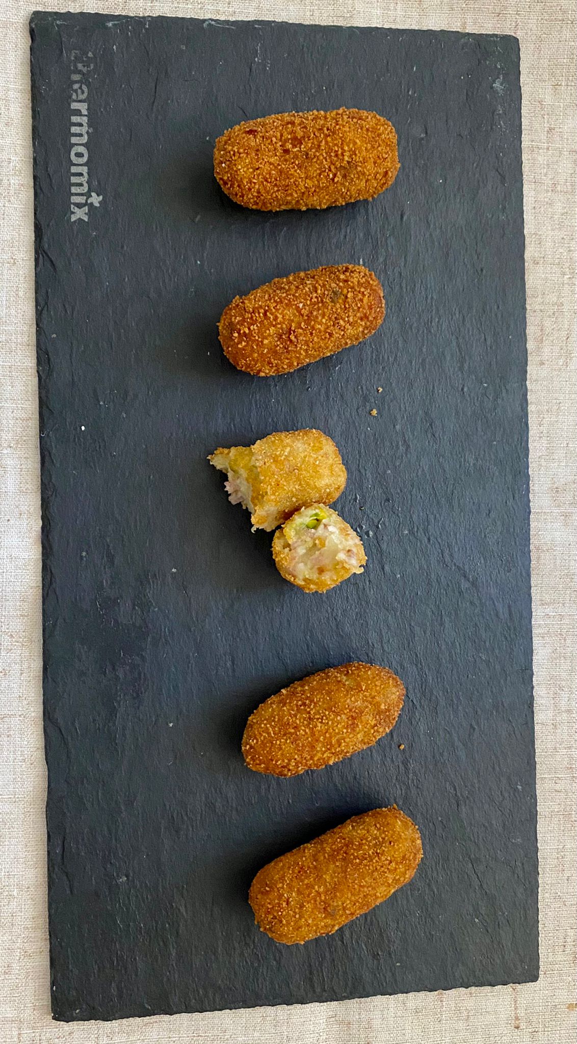 Por ultimo dejar enfriar la masa, hacer las croquetas, pasar por pan rayado y llevarlas a freír.