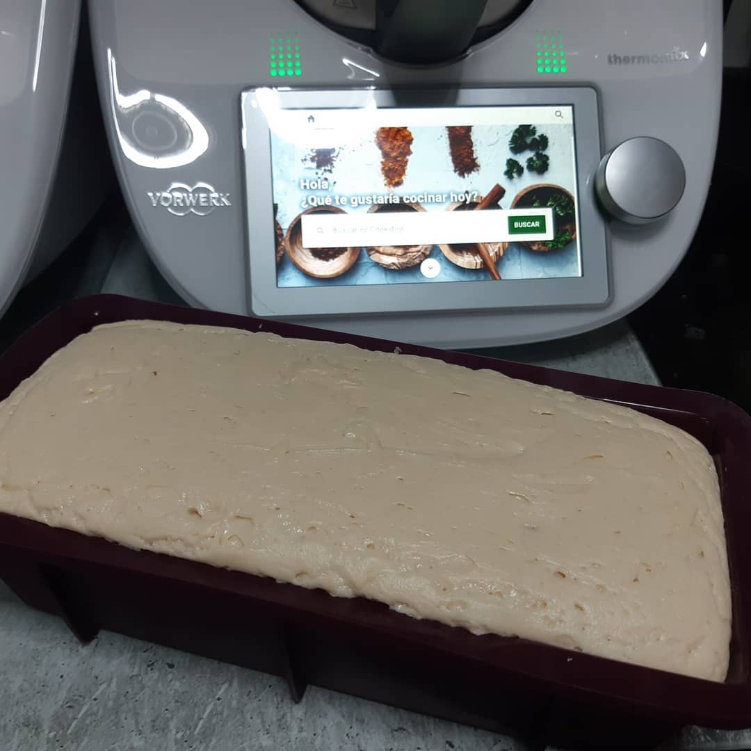 6-Volcar a un molde tipo plun-cake (el mio como es de tupperware no necesita engrasarse, solo mojarlo con agua¡¡¡). Tapar y dejar levar hasta que sobresalga del borde.